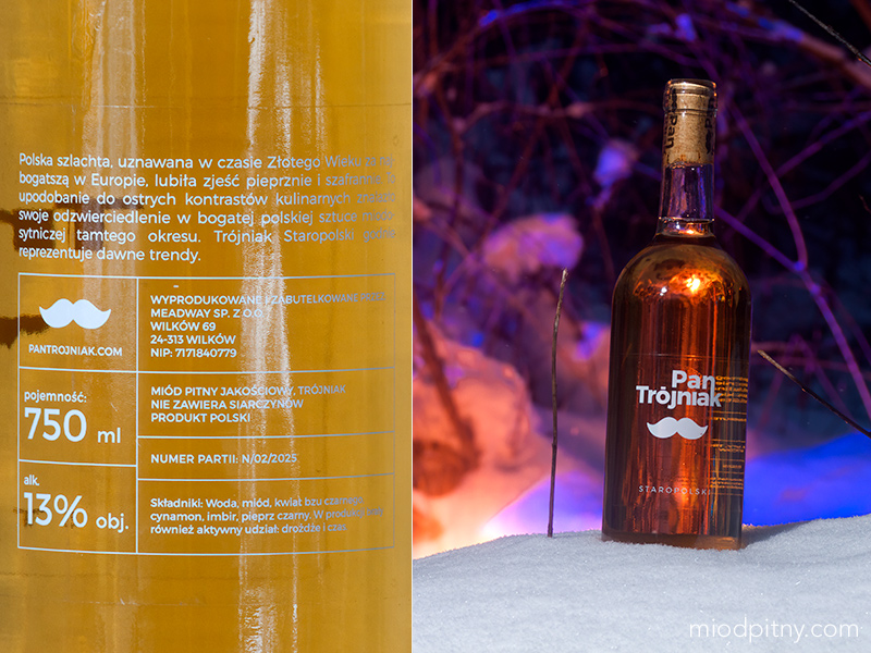 Zimą jak wiadomo musi być zimno, a jak jest zimno to doskonale pijalne stają się najcięższe miody, dwójniaki i półtoraki, które podczas na przykład upałów są raczej nie wskazane do degustacji nawet schłodzone. Latem odkładamy te cięższe miody na zimę, co dodaje im też czasu leżakowania, na pewno polepszając ich walory smakowe. Po roku czekania odkorkowaliśmy jeden z dłużej wyczekiwanych miodów, o bardzo ładnej, oryginalnej etykiecie, co w świecie miodów pitnych jest zjawiskiem rzadkim jak już nie raz nad tym ubolewaliśmy.