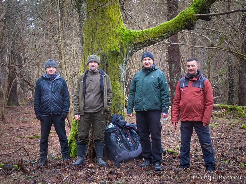 Na zdjęciu widzicie jak degustowaliśmy wyjątkowo miody pod dachem, w rekonstrukcji ziemianki partyzanckiej. Musieliśmy zrobić wyjątek ze względu na ciągłe opady śniegu, które zasypywały nam cały dobytek. Zdjęcia jednak wykonywaliśmy poza ziemianką.